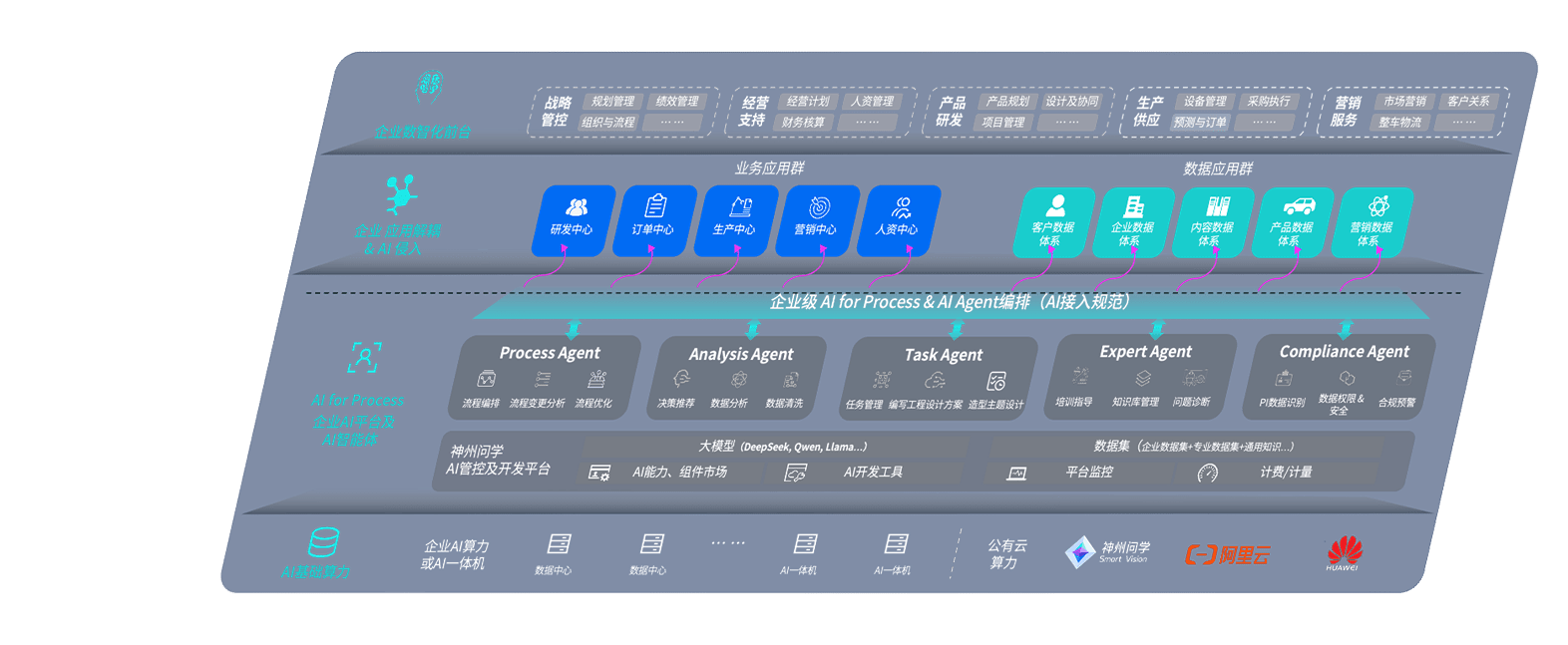铂莱国际问学智车解决方案是一套基于AI技术的汽车行业智能化系统,,,覆盖从底层算力到顶层AI应用的全栈方案。。方案由算力层、、、模型层和应用层组成:算力层,,,方案支持多种一体机配置,,具备云端灵活部署、、、多云适配以及动态优化计算资源的能力;模型层,,,铂莱国际问学平台版提供了企业级AI应用一站式构建与管理平台,,支持基于后训练强化技术的汽车企业专属模型的训练、、、评测和运营;应用层,,,铂莱国际问学DeepSeek版提供包括超级员工、、智能招采、、智能营销、、、智能客服、、、AI for BI等一系列解决方案,,,可助力汽车行业实现数字化转型,,,让管理更智能、、、响应更敏捷。。