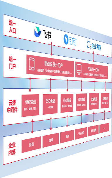 对协作平台提供支持服务,,,支持企业应用与协作平台对接,,,包含组织同步、、消息集成、、待办集成等。。。支持目前主流的协作平台:钉钉、、、企微和飞书。。。。
